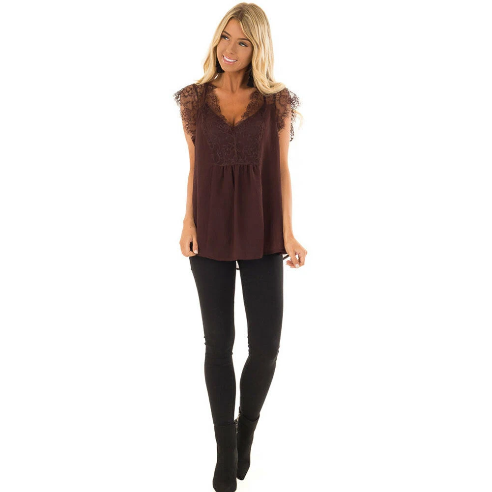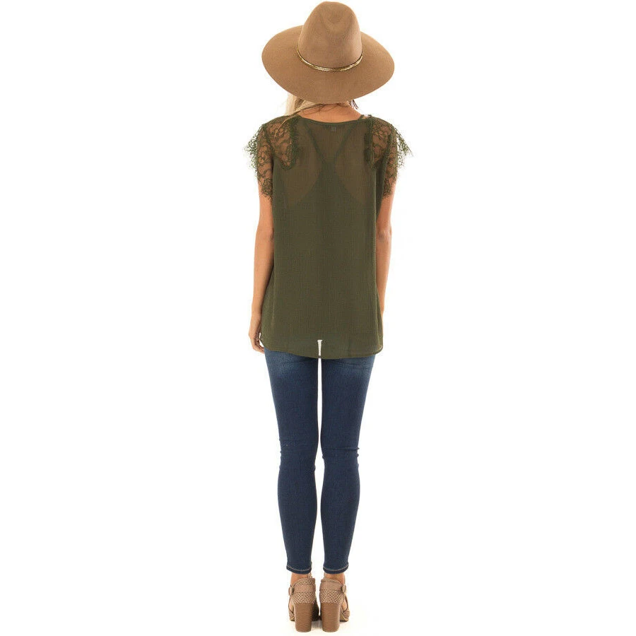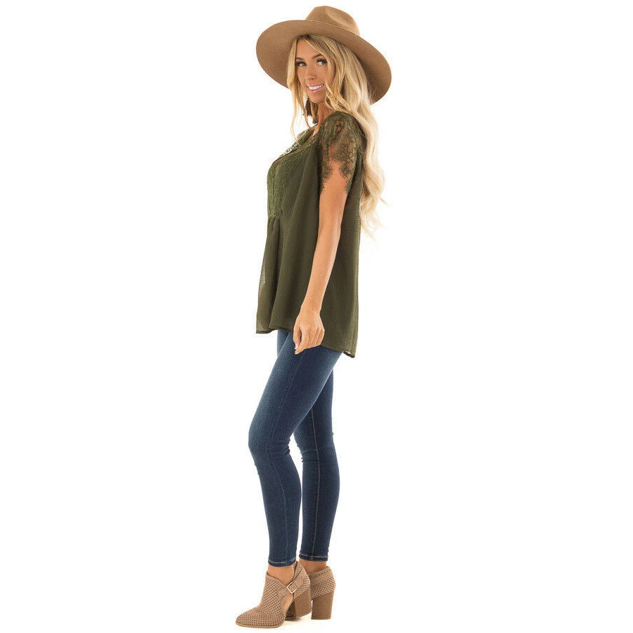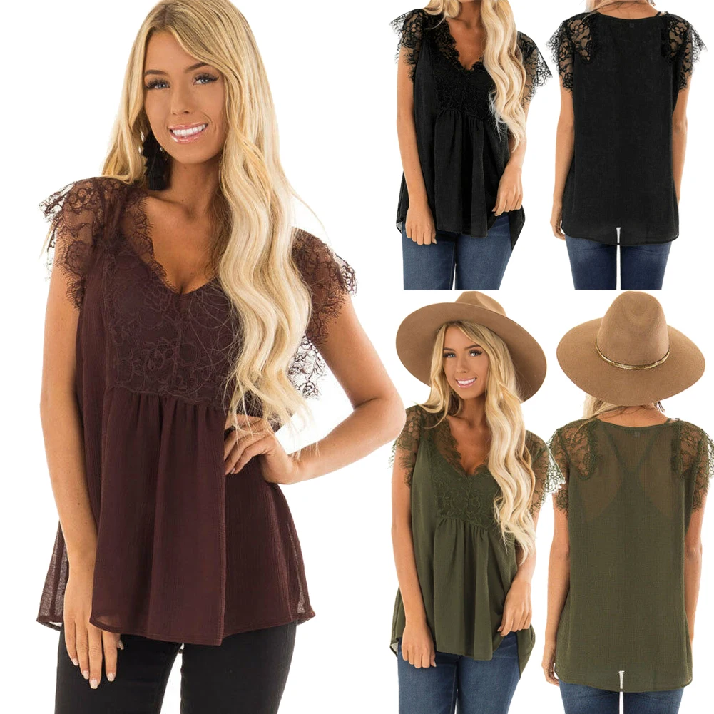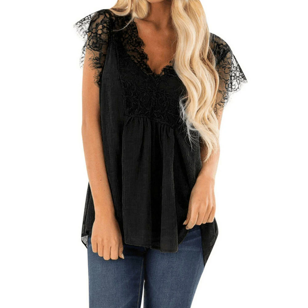 New Womens Fashion Lace V Neck Solid Bandge Koszulki Damskie Lace up Patchwork Short Sleeve Tops Plus Size 5XL Summer Top