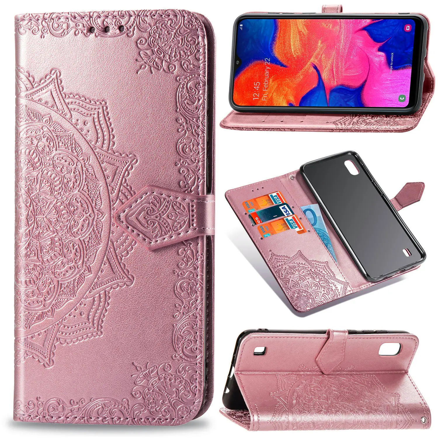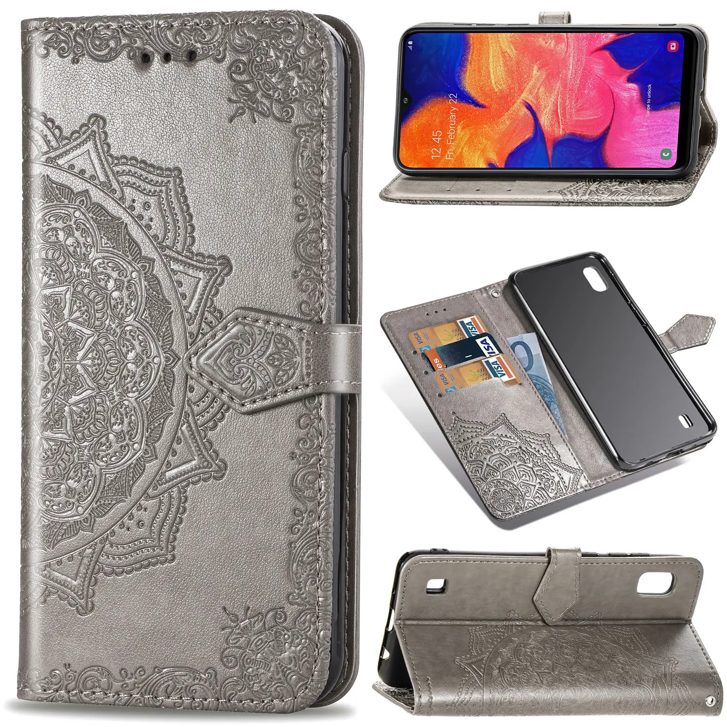 Butterfly Flower Embossed Book Leather Phone Case for Samsung Galaxy J4 Plus J6 2018 J2 Core Note 9 Flip Wallet Cover With Strap