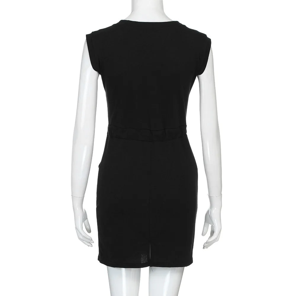 Sexy Summer Women Party Dress New Women Bottoming Sleeveless Bag Hip Dress Deep V-neck Openwork Straps Knit Bodycon Dress