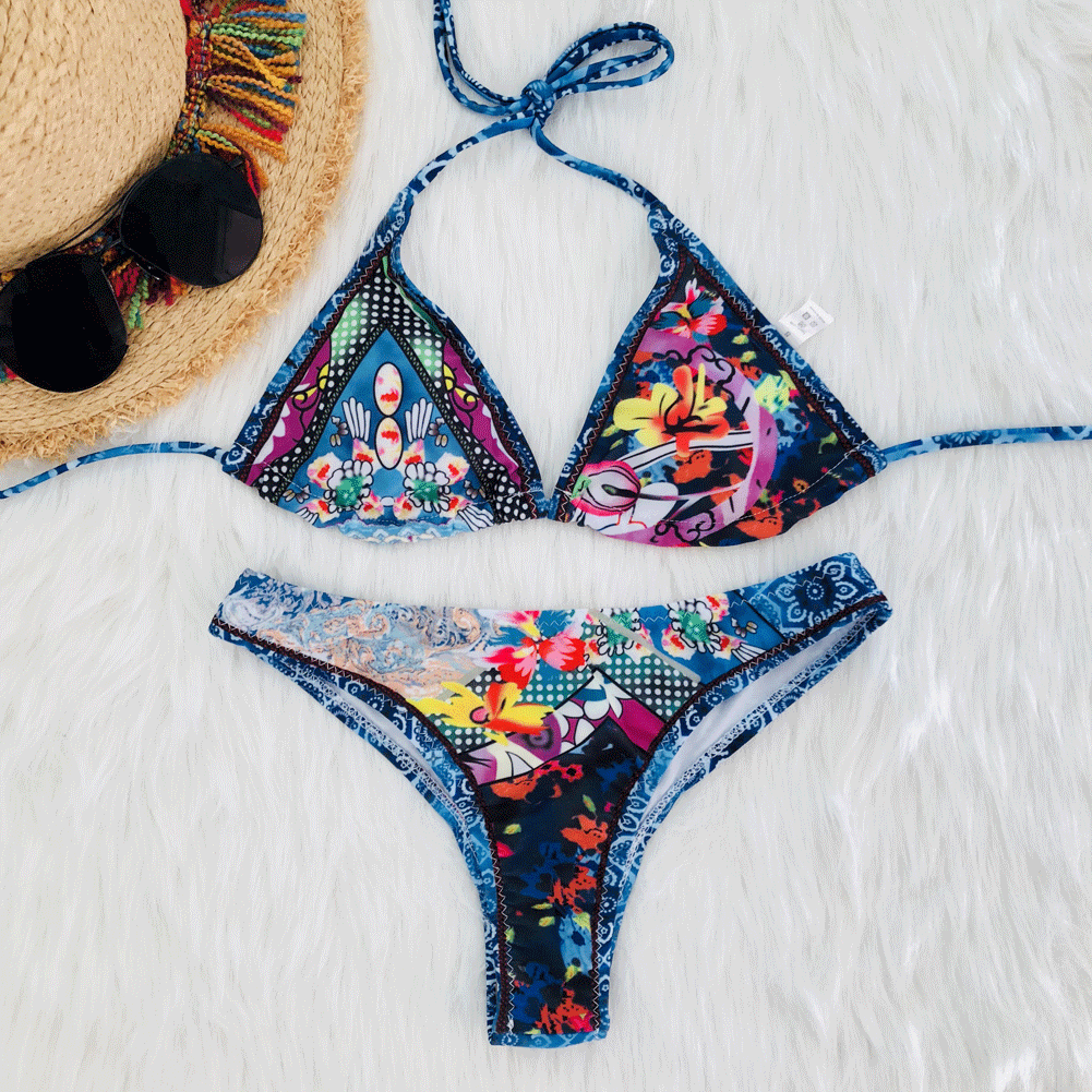Women s Floral Bikini Set Print Swimsuit Push-up Swimwear Beach Suit Sexy Solid New Patchwork Bikini Push Up Padded Swimsuit A1